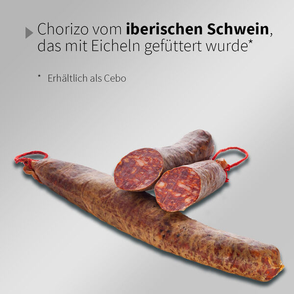 Filet, Wurst und Chorizo, drei zarte Versuchungen aus dem Angebot iberischer Produkte. Schon vor der Berührung mit dem Gaumen erkennt dieser seinen Geschmack. Die Erfahrung erinnert uns an die Intensität des Geschmacks. Das Warten wird lang.